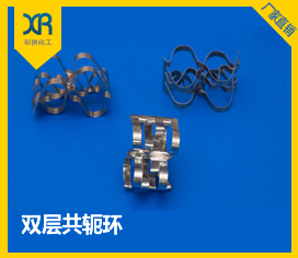 雙層共軛環(huán)填料該填料揉合了環(huán)形和鞍形填料的優(yōu)點,采用共軛曲線肋片結構,兩端外卷邊及合適的長徑比。填料間或填料與塔壁間均為點接觸,不會產生疊套,孔隙均勻,阻力小,亂堆時取定向排列,故有規(guī)整填料的特點,有較好的流體力學和傳質性能。