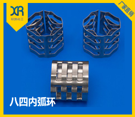 八四內(nèi)弧環(huán)該填料具有合理的幾何對稱性,構(gòu)造均勻性好及高的空隙率,八弧圈與四弧圈順軸向交替安排,各弧段沿徑向環(huán)內(nèi)折進,從而使填料表面連續(xù)而不斷開,且在空間均勻頒布與鮑爾環(huán)相比,通量可提高15-30%,壓降減少20-30%。